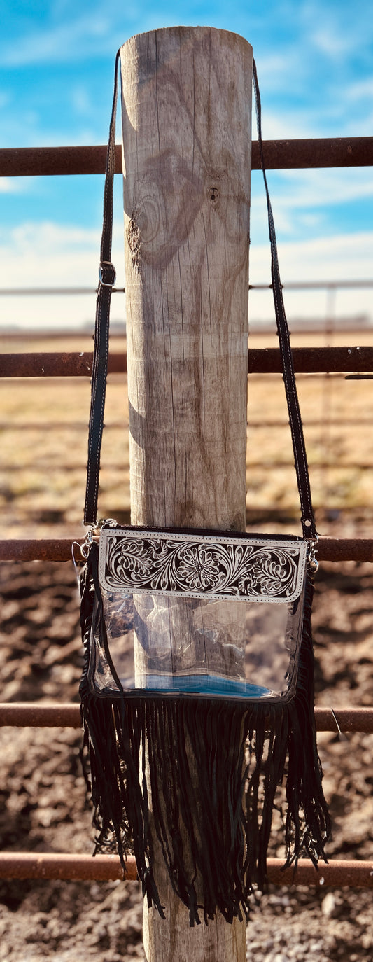 Hand Tooled Clear Purse: WHITE/ BLACK