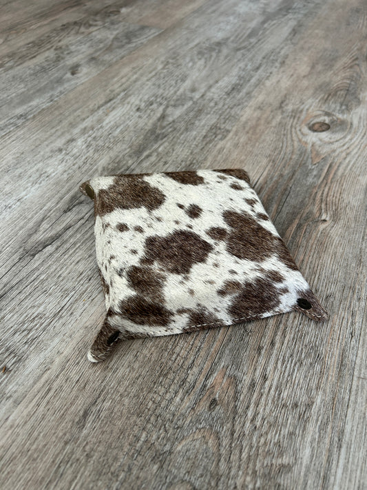 Cowhide Leather Keychain Wallet/ Brown & White