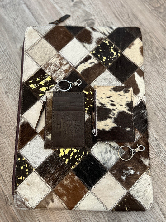 13” Brown & White Hair-On Cowhide Ipad/Laptop Sleeve