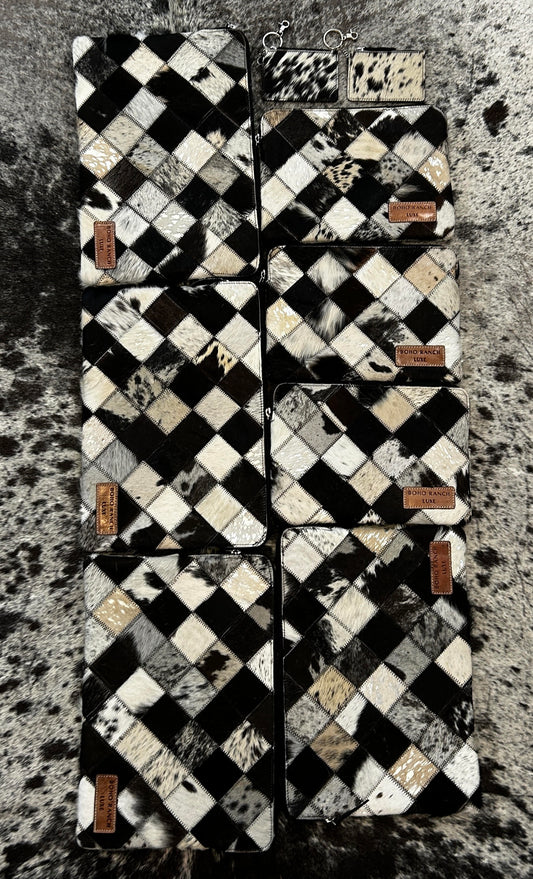 17” Black & White Hair-On Cowhide Ipad/Laptop Sleeve